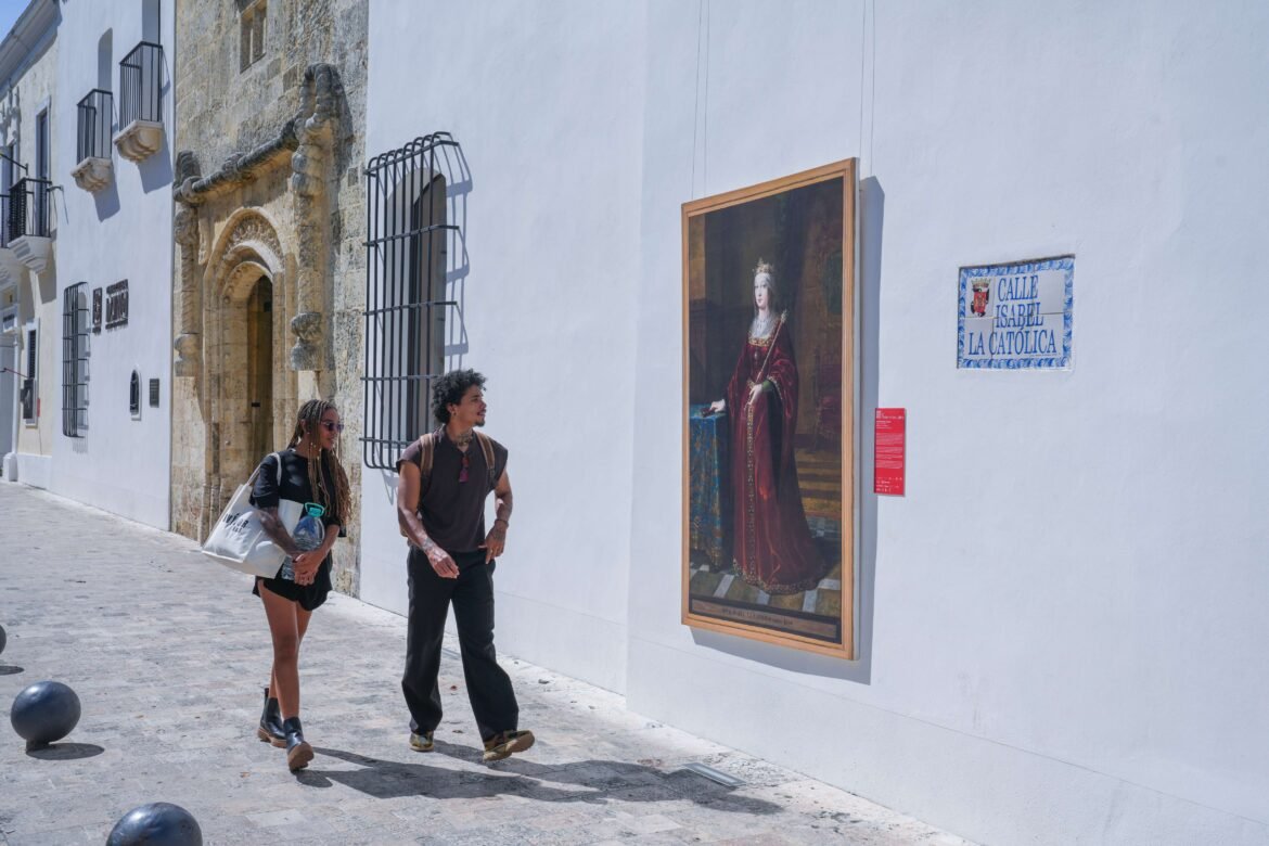 En este marco, el Centro Cultural Taíno Casa del Cordón exhibe en su fachada la reproducción de la obra “Isabel la Católica”, un óleo sobre lienzo de Luis de Madrazo y Kuntz, realizado alrededor de 1848 y perteneciente al acervo del Museo del Prado.