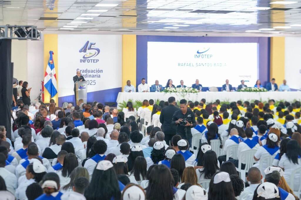 SANTO DOMINGO. – El Instituto Nacional de Formación Técnico Profesional (INFOTEP) realizó la Graduación Ordinaria del Gran Santo Domingo, entregando 2,097 nuevos técnicos formados en más de 60 áreas de alta demanda, un aporte que su director general, Rafael Santos Badía, definió como “una inyección directa de productividad, innovación y dinamismo para la economía dominicana”.