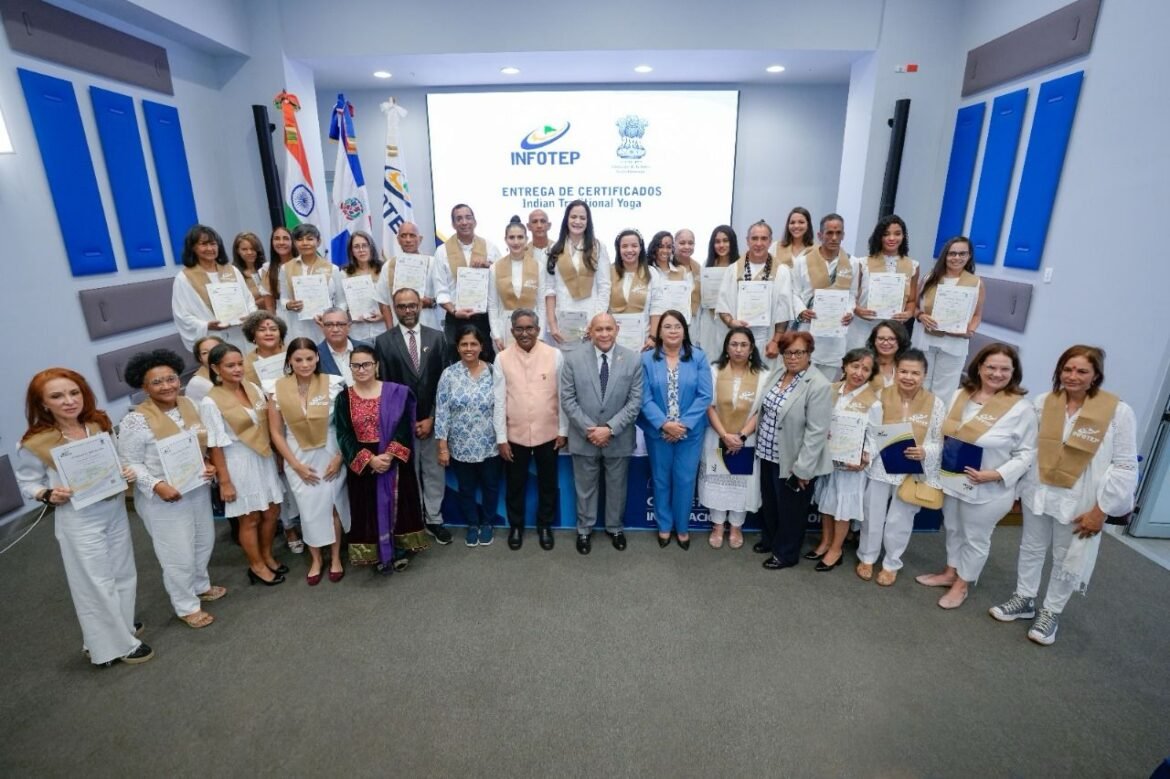 Santo Domingo, RD. -El Instituto Nacional de Formación Técnico Profesional (INFOTEP) y la Embajada de India en la República Dominicana certificaron a 39 facilitadores en el curso Yoga Tradicional, tras haber finalizado satisfactoriamente su entrenamiento.