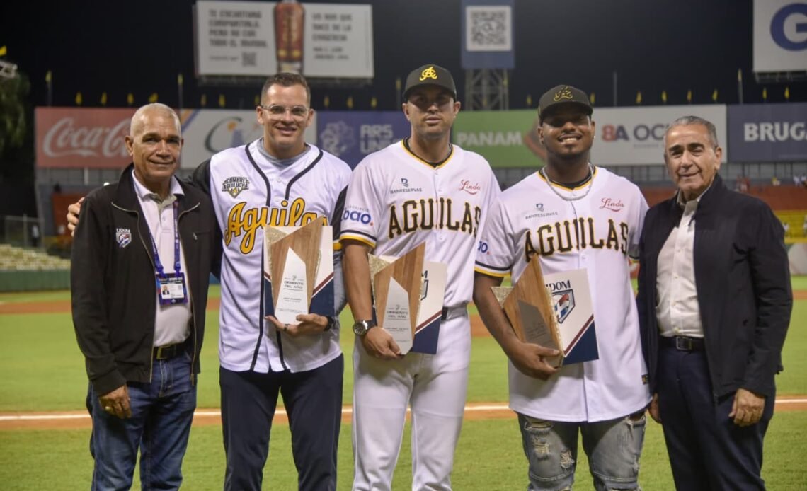 La entrega de los premios estuvo a cargo del presidente de las Águilas, Victor García Sued; el coordinador se operaciones de LIDOM, Valentín Contreras.