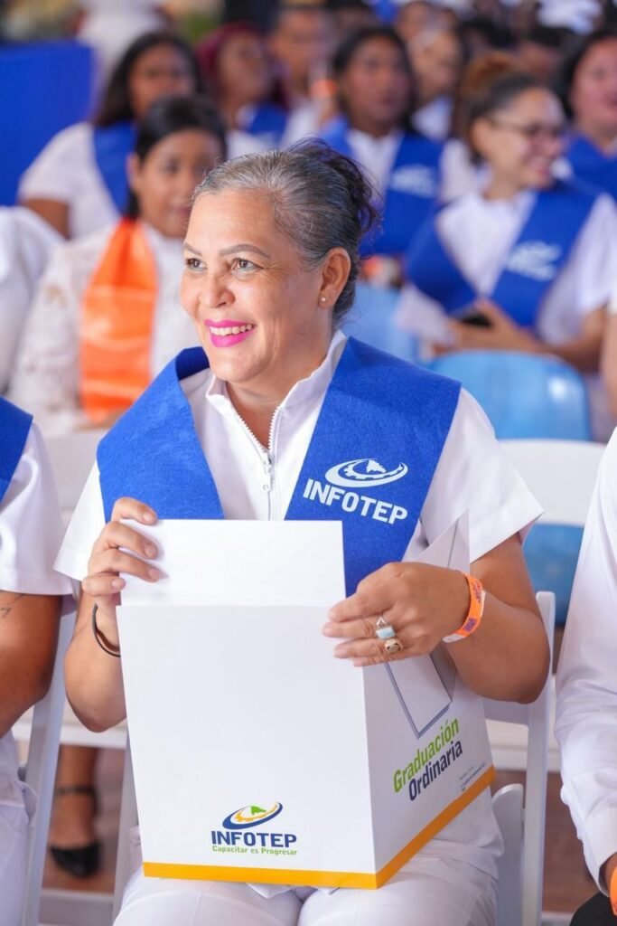 “La formación recibida en INFOTEP les permite cumplir con perfiles cada vez más exigentes y aspirar a empleos dignos y de calidad. A cada persona graduada, hombres y mujeres, les felicito sinceramente. Representan la fuerza que impulsa el desarrollo y el bienestar colectivo de nuestro país”, expresó.