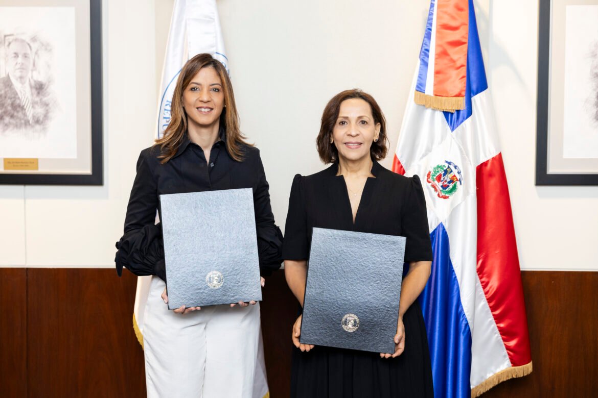 La doctora Odile Camilo Vincent, rectora de Unibe, y Mildred Minaya, vicepresidenta de Comunicación, Sostenibilidad y Reputación de APAP, sellaron este acuerdo que refuerza el compromiso de ambas instituciones con el desarrollo social y económico del país a través de la educación de calidad.