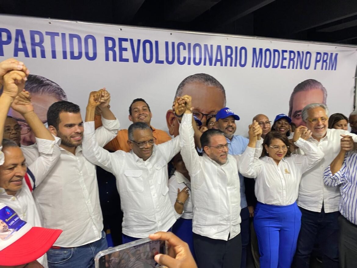 También, Julia Angelita Jiménez, directora del movimiento Unidos para Triunfar, Amable Ceballos, director de propagandas, doña Angelita, además y Nelson Gutiérrez, coordinador nacional del Movimiento Comunicadores 8.0 Luis Abinader Presidente, dirigentes del PRM y partidos aliados, entre otros.