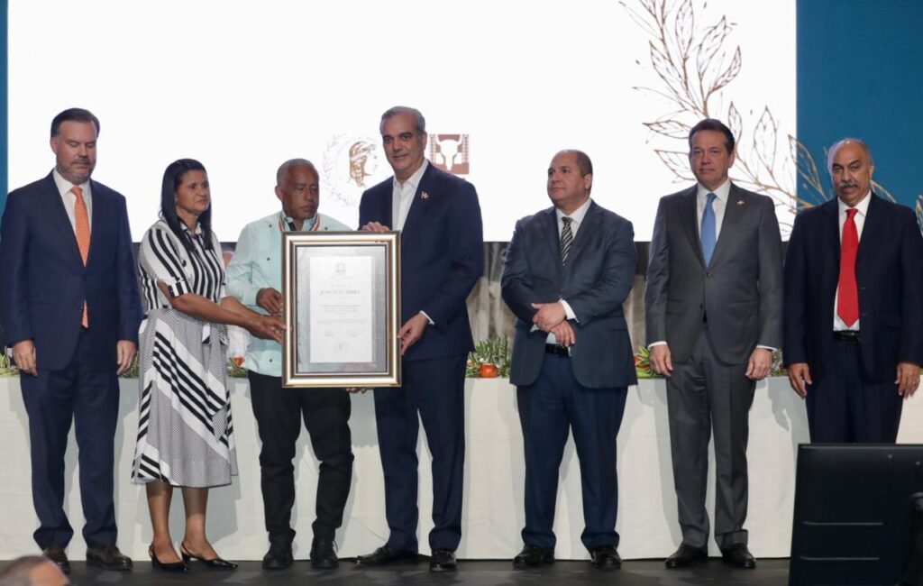 Durante la entrega de la Medalla de Honor al Mérito Agropecuario, el presidente Abinader estuvo acompañado del ministro de Industria, Comercio y Mipymes, Víctor Bisonó. En la ceremonia se premiaron las siguientes categorías: Cultivo de Tabaco: Matías López; Cultivo de Café: Ángel Custodio; Avicultura: PETS; Agroindustria: Font Gamundi; Ganadería de Carne: José Eduardo Reyes; Hortofrutícola: Edward Abreu; Cultivo de Arroz: Marcos Rodríguez; Porcicultura: Amílcar Fernández; Innovación Agropecuaria: Hacienda Ochoa; Terminación de Novillos: Orlando Arias; Ganadería de Leche: José Raulin Bueno Veras; y Cultivo de Cacao: Juan Francisco Abreu.